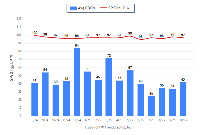 October 2025 Average Continuous Days on Market trend Remains Steady and Sold/Original List Price Ratio Remains Steady**