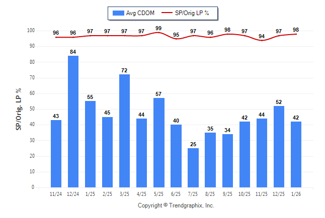 January 2026 Average Continuous Days on Market trend Remains Steady and Sold/Original List Price Ratio Remains Steady**