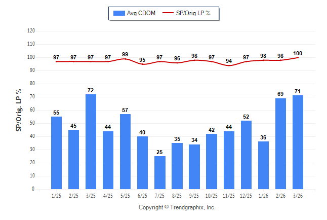 March 2026 Average Continuous Days on Market trend was Rising and Sold/Original List Price Ratio was Rising**