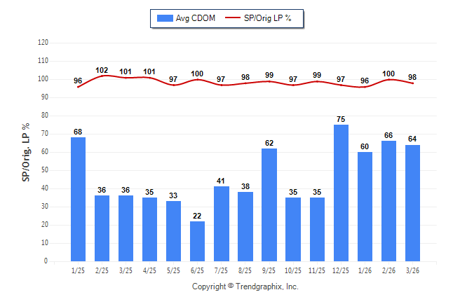 March 2026 Average Continuous Days on Market trend Remains Steady and Sold/Original List Price Ratio Remains Steady**