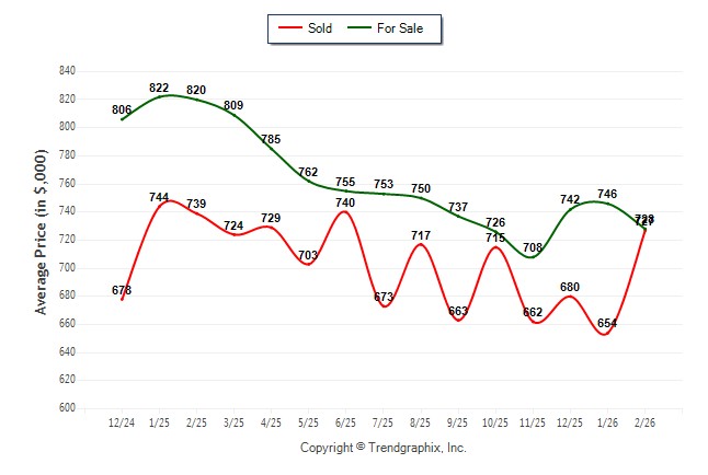 February 2026 Average For Sale Price was Neutral and Average Sold Price was Appreciating**