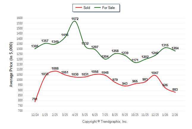 February 2026 Average For Sale Price was Neutral and Average Sold Price was Depreciating**