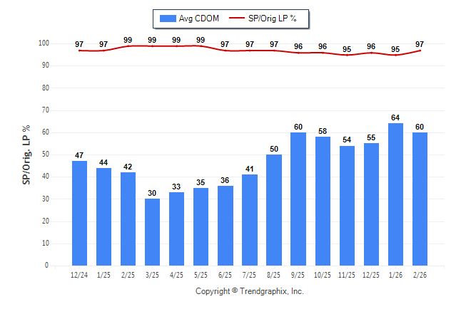 February 2026 Average Continuous Days on Market trend Remains Steady and Sold/Original List Price Ratio Remains Steady**