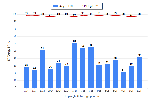 September 2025 Average Continuous Days on Market trend Remains Steady and Sold/Original List Price Ratio Remains Steady**