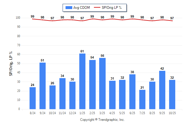 October 2025 Average Continuous Days on Market trend Remains Steady and Sold/Original List Price Ratio was Falling**