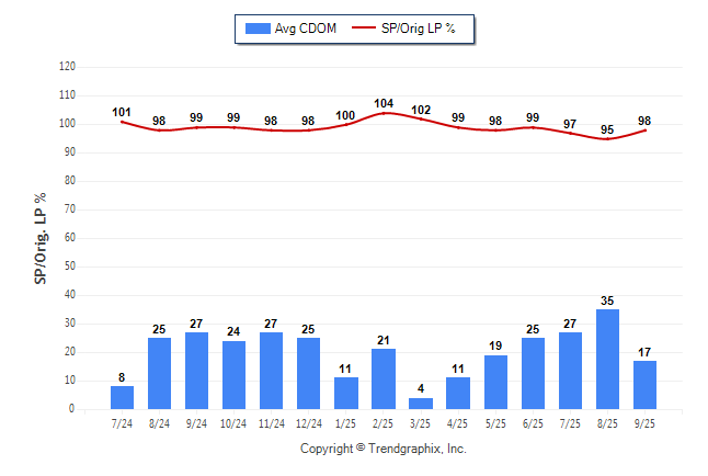 September 2025 Average Continuous Days on Market trend Remains Steady and Sold/Original List Price Ratio Remains Steady**