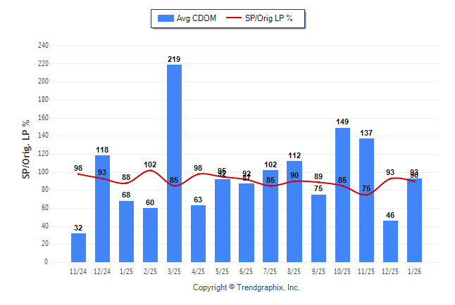 January 2026 Average Continuous Days on Market trend Remains Steady and Sold/Original List Price Ratio Remains Steady**