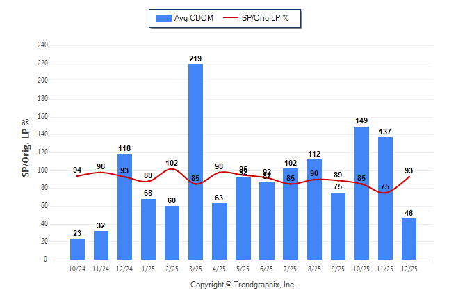 December 2025 Average Continuous Days on Market trend Remains Steady and Sold/Original List Price Ratio Remains Steady**