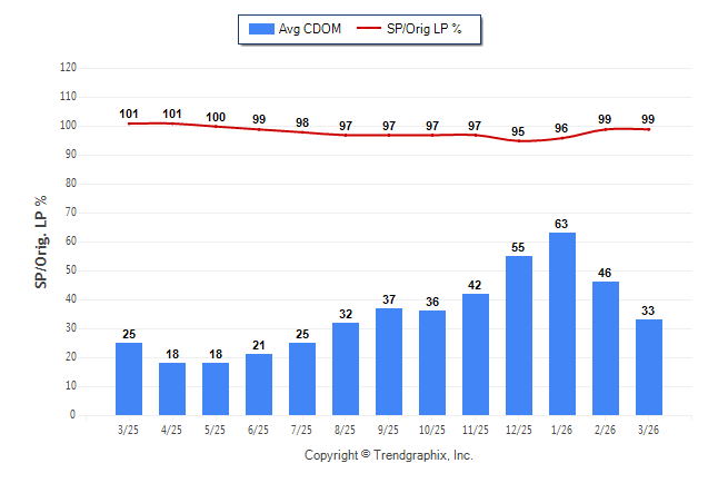March 2026 Average Continuous Days on Market trend Remains Steady and Sold/Original List Price Ratio was Rising**