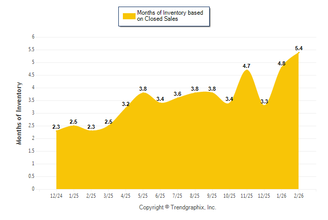 Curnt vs. Same Month 1 Yr Ago: Months of Inventory (Closed Sales)