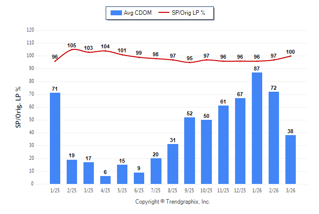 March 2026 Average Continuous Days on Market trend Remains Steady and Sold/Original List Price Ratio was Rising**