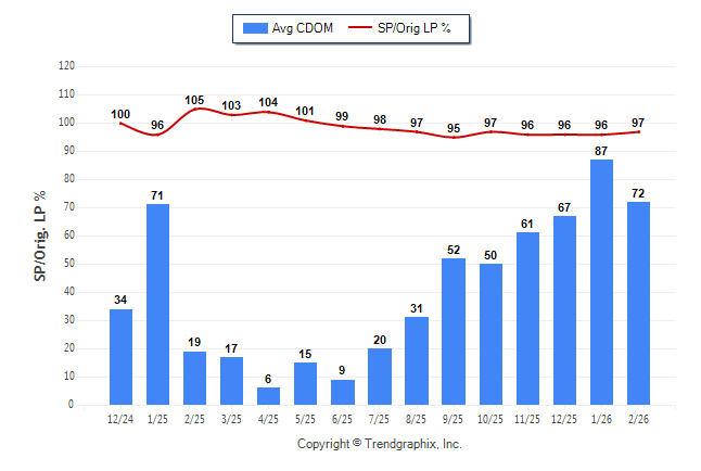February 2026 Average Continuous Days on Market trend Remains Steady and Sold/Original List Price Ratio Remains Steady**