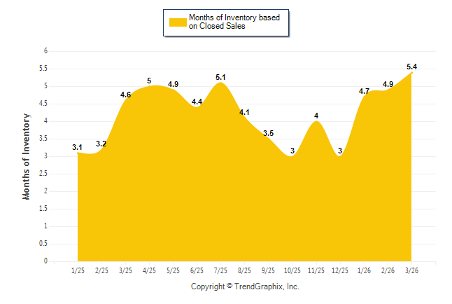 Curnt vs. Same Month 1 Yr Ago: Months of Inventory (Closed Sales)