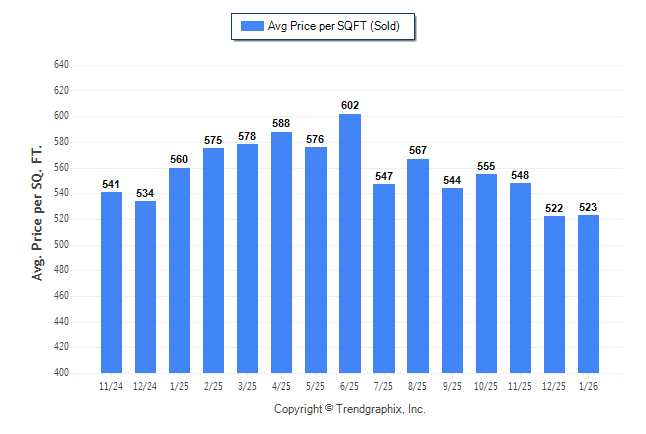 January 2026 Average Sold Price per Square Footage was Neutral**