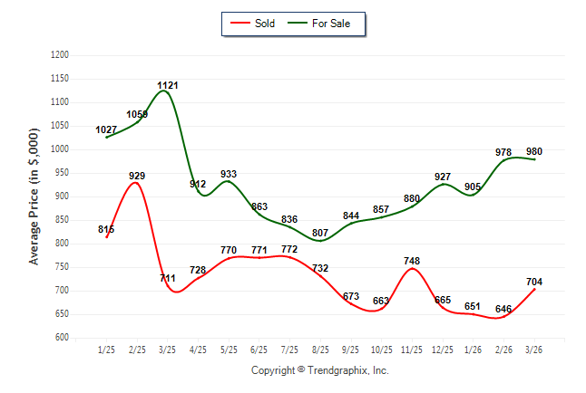 March 2026 Average For Sale Price was Appreciating and Average Sold Price was Neutral**
