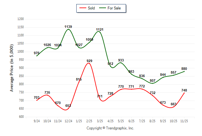 November 2025 Average For Sale Price was Appreciating and Average Sold Price was Neutral**