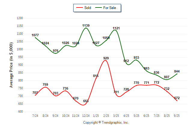 September 2025 Average For Sale Price was Neutral and Average Sold Price was Depreciating**