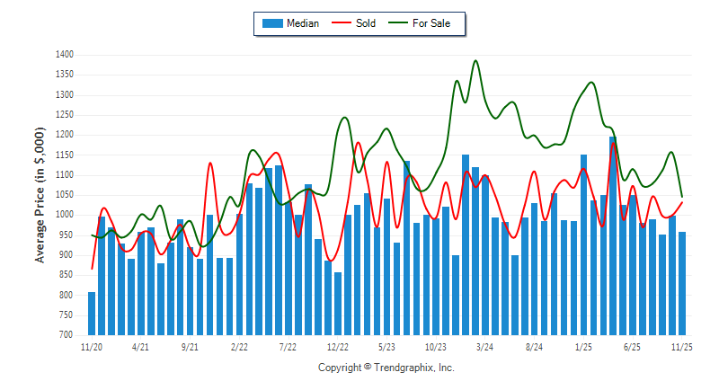 November 2025 Median Price was Neutral, Avg. For Sale Price was Neutral, and Avg. Sold Price was Neutral**