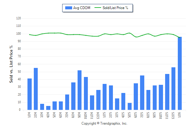 January 2026 Average Continuous Days on Market trend was Rising and Sold/List Price Ratio Remains Steady**