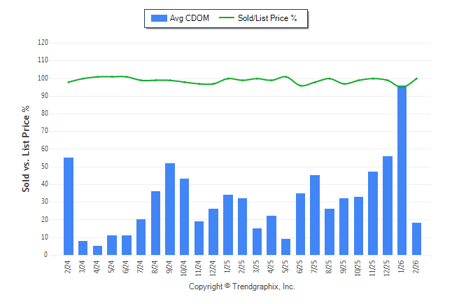 February 2026 Average Continuous Days on Market trend Remains Steady and Sold/List Price Ratio Remains Steady**