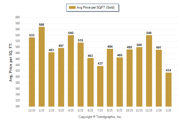 February 2026 Average Sold Price per Square Footage was Neutral**