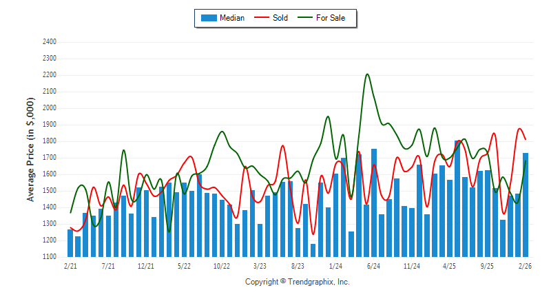 February 2026 Median Price was Appreciating, Avg. For Sale Price was Neutral, and Avg. Sold Price was Neutral**