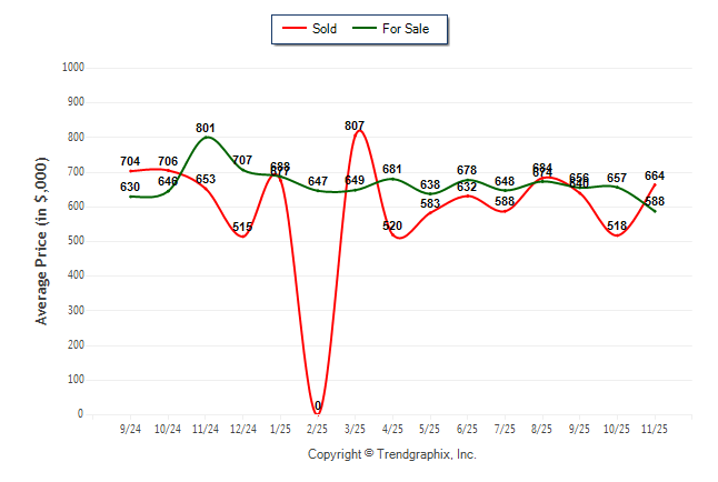 November 2025 Average For Sale Price was Depreciating and Average Sold Price was Neutral**