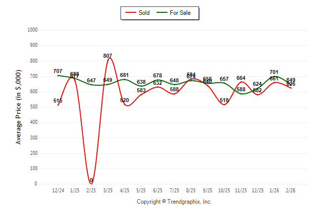 February 2026 Average For Sale Price was Neutral and Average Sold Price was Neutral**