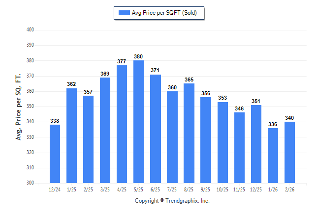 February 2026 Average Sold Price per Square Footage was Neutral**