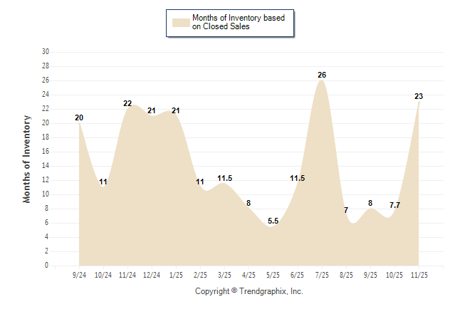 Curnt vs. Same Month 1 Yr Ago: Months of Inventory (Closed Sales)