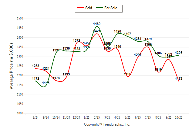 October 2025 Average For Sale Price was Neutral and Average Sold Price was Depreciating**