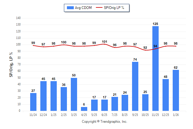 January 2026 Average Continuous Days on Market trend Remains Steady and Sold/Original List Price Ratio was Rising**
