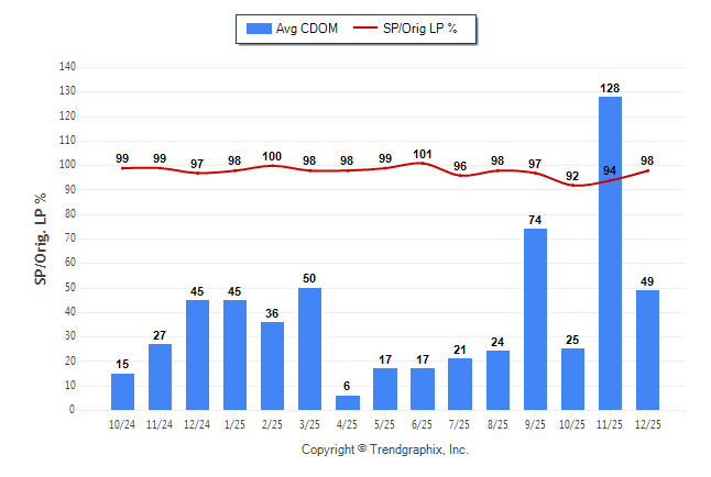 December 2025 Average Continuous Days on Market trend Remains Steady and Sold/Original List Price Ratio Remains Steady**