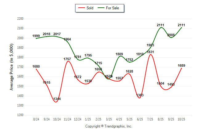 October 2025 Average For Sale Price was Appreciating and Average Sold Price was Neutral**