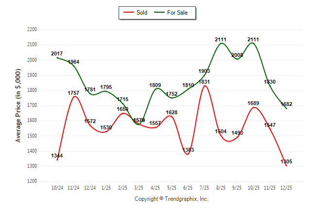 December 2025 Average For Sale Price was Depreciating and Average Sold Price was Depreciating**