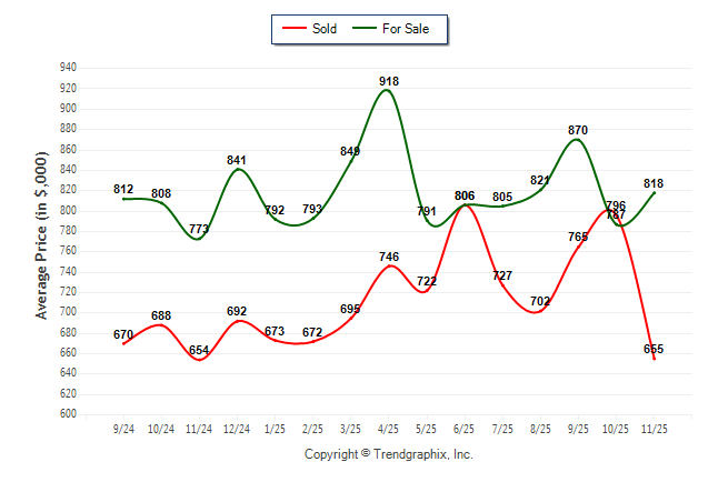 November 2025 Average For Sale Price was Neutral and Average Sold Price was Depreciating**