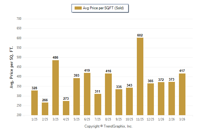 March 2026 Average Sold Price per Square Footage was Neutral**