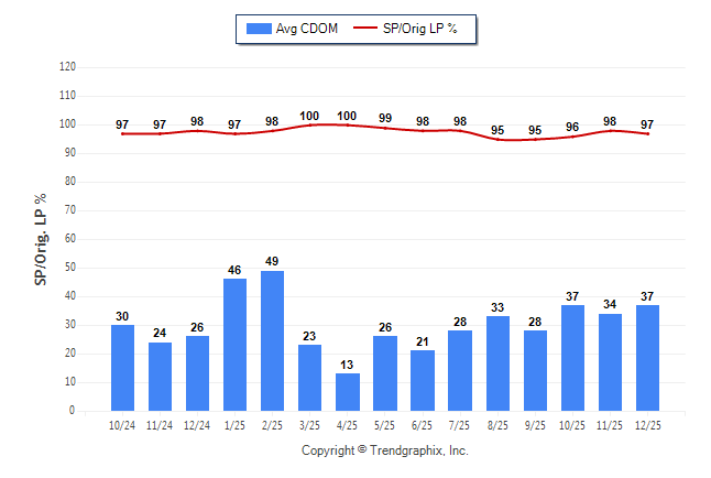 December 2025 Average Continuous Days on Market trend was Rising and Sold/Original List Price Ratio Remains Steady**