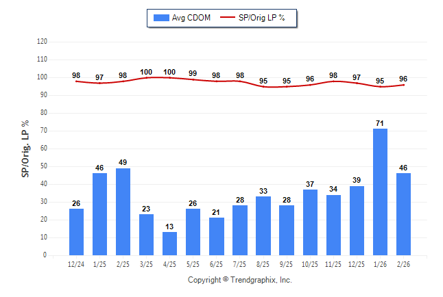 February 2026 Average Continuous Days on Market trend Remains Steady and Sold/Original List Price Ratio Remains Steady**
