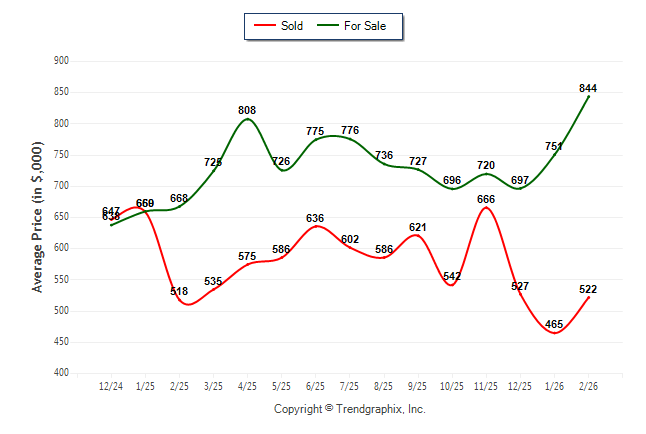 February 2026 Average For Sale Price was Appreciating and Average Sold Price was Neutral**