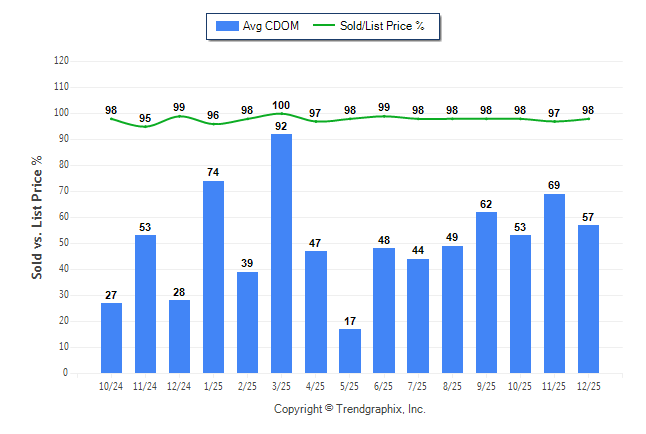 December 2025 Average Continuous Days on Market trend Remains Steady and Sold/List Price Ratio Remains Steady**