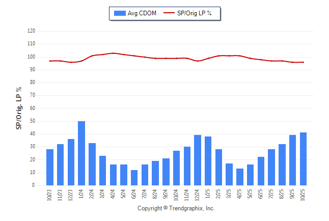 October 2025 Average Continuous Days on Market trend was Rising and Sold/Original List Price Ratio was Falling**