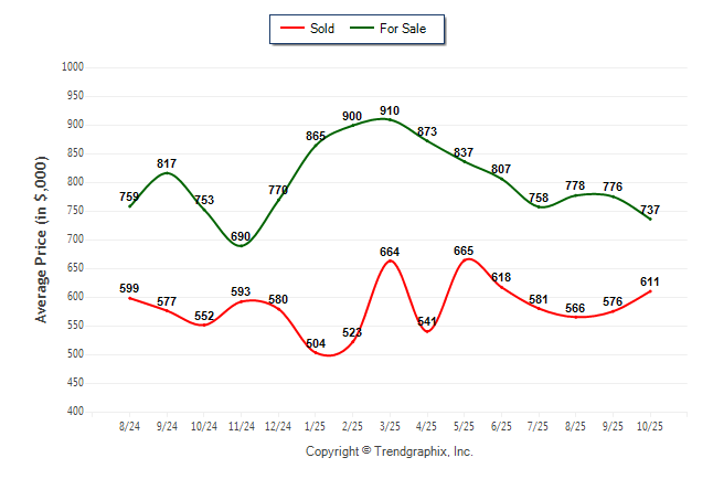October 2025 Average For Sale Price was Depreciating and Average Sold Price was Neutral**