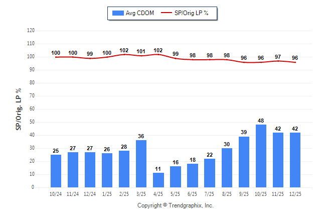 December 2025 Average Continuous Days on Market trend Remains Steady and Sold/Original List Price Ratio was Falling**