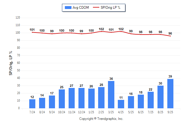 September 2025 Average Continuous Days on Market trend was Rising and Sold/Original List Price Ratio was Falling**