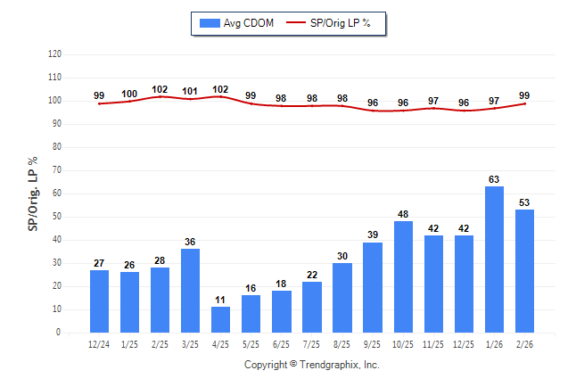 February 2026 Average Continuous Days on Market trend Remains Steady and Sold/Original List Price Ratio was Rising**