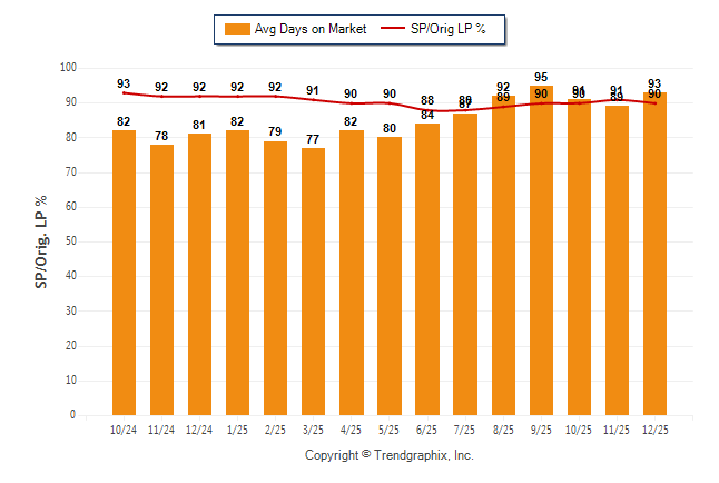 December 2025 Average Days on Market trend Remains Steady and Sold/Original List Price Ratio Remains Steady**