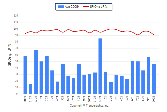 October 2025 Average Continuous Days on Market trend Remains Steady and Sold/Original List Price Ratio Remains Steady**