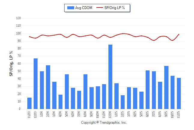 November 2025 Average Continuous Days on Market trend Remains Steady and Sold/Original List Price Ratio was Rising**