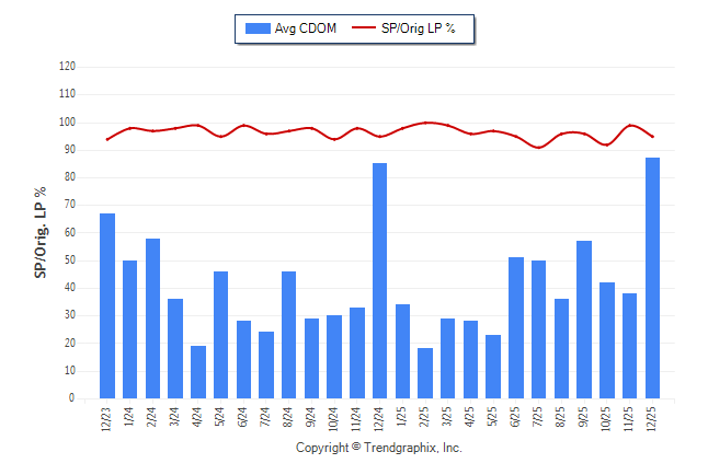 December 2025 Average Continuous Days on Market trend was Rising and Sold/Original List Price Ratio Remains Steady**